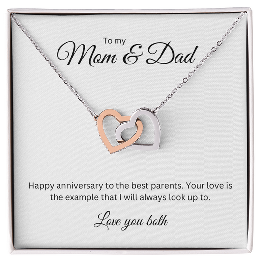 To My Mom & Dad: Interlocking Heart Necklace with Birthday Message Card, Meaningful Jewelry Gift