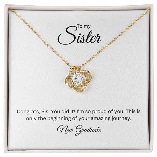 To My Sister: Love Knot Necklace with Graduate Message Card, Meaningful Jewelry Gift