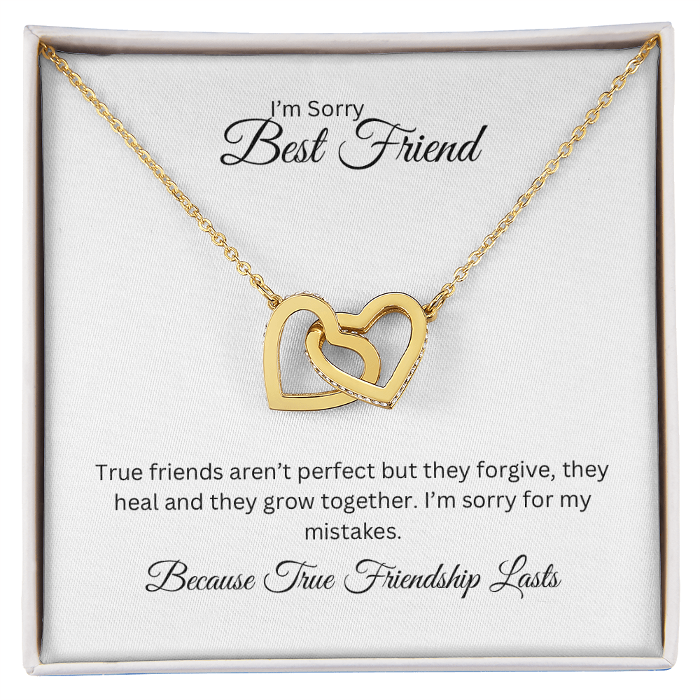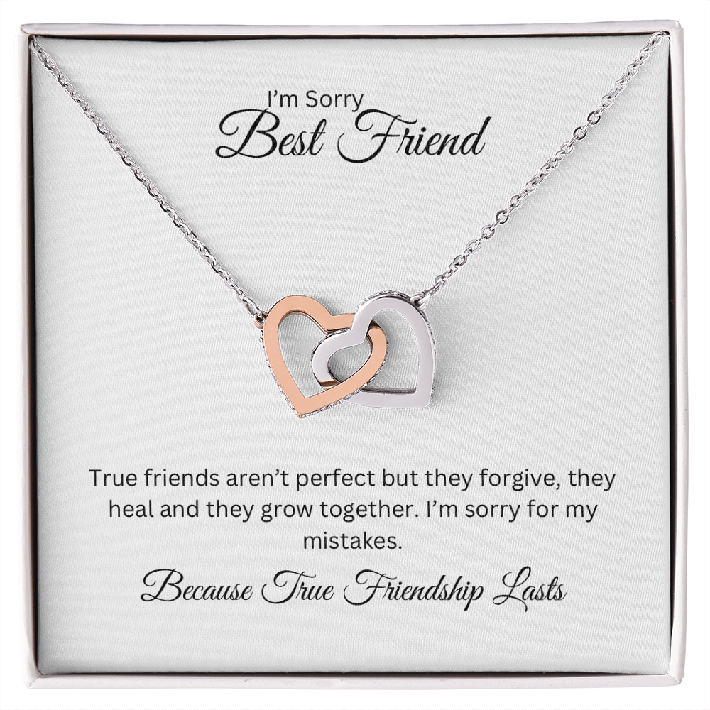 I'm Sorry, Best Friend, Interlocking Hearts Necklace with Heartfelt Card, Meaningful Jewelry Gift
