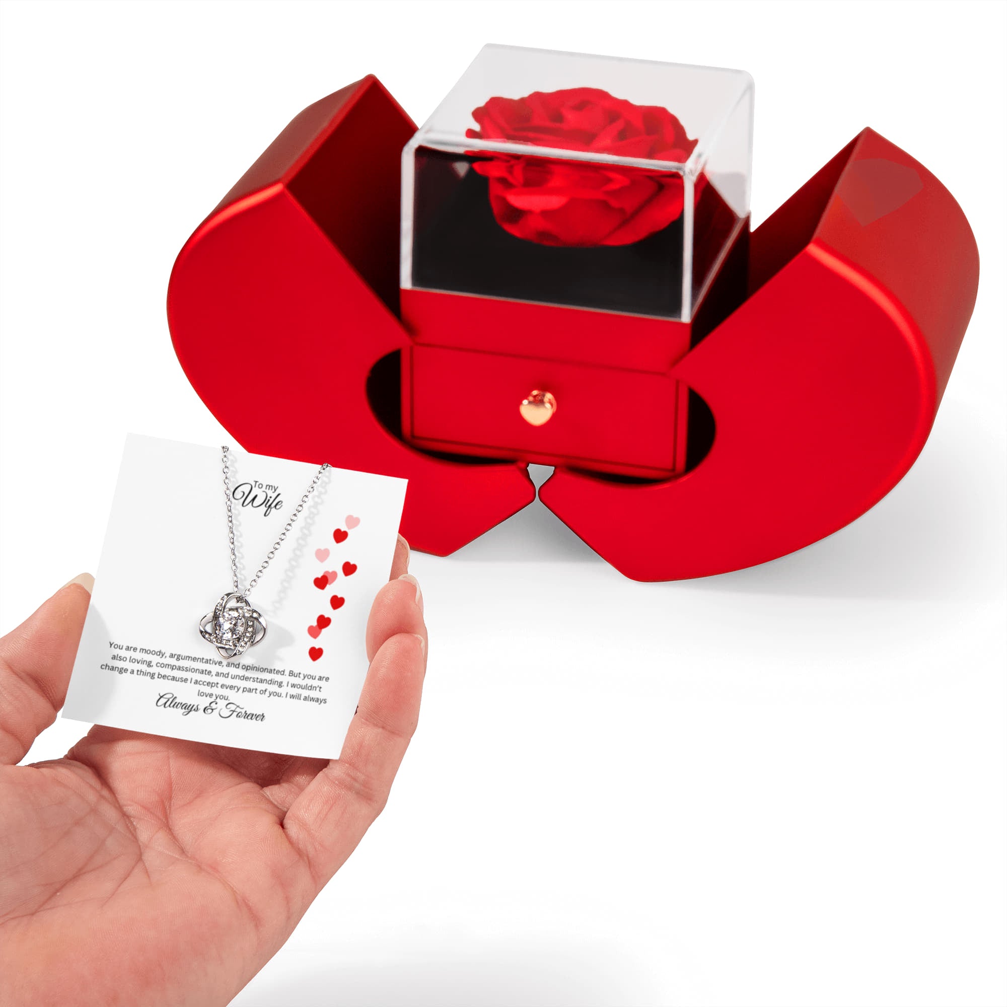 Love Knot Necklace with Red Heart Rose Box and Heartfelt Message Card, Meaningful Jewelry Gift