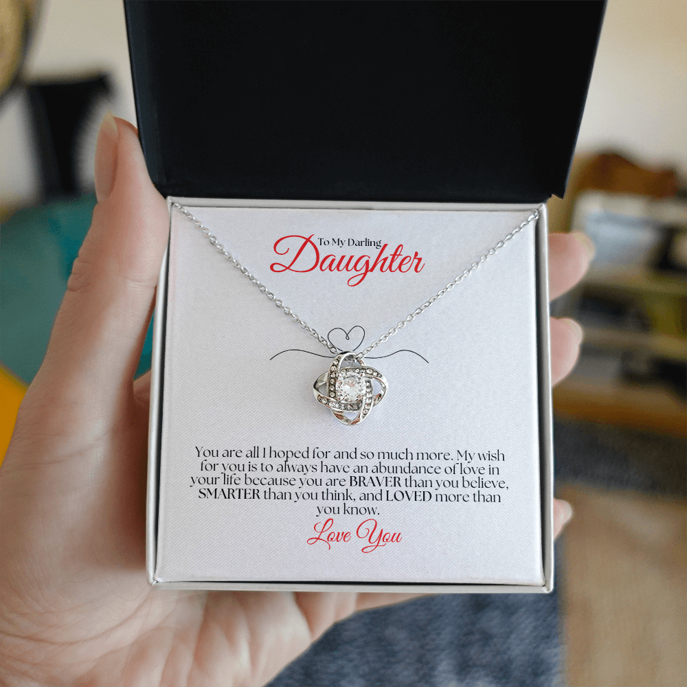 To my Daughter, Love Knot Necklace with Heartfelt Message Card, Meaningful Jewelry Gift