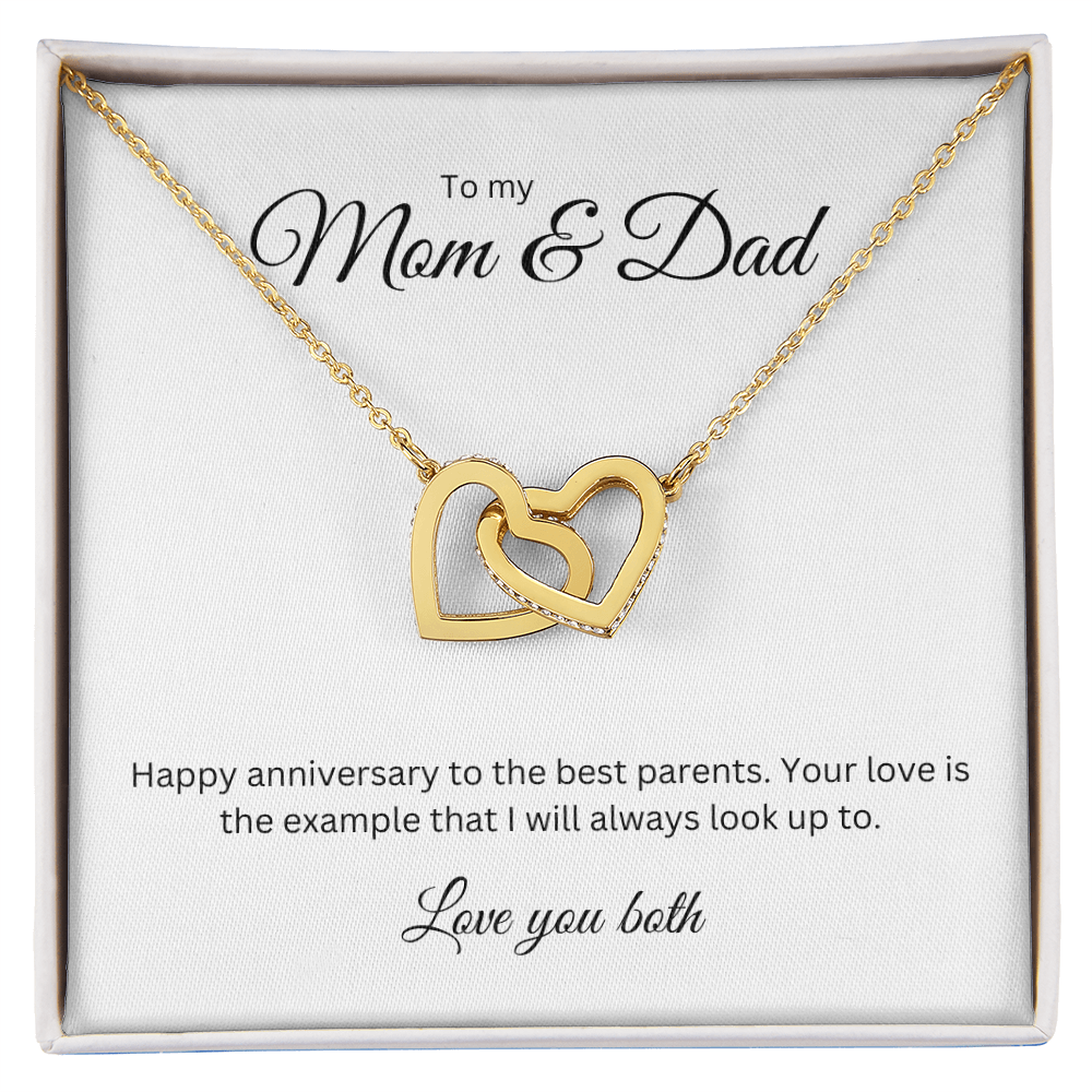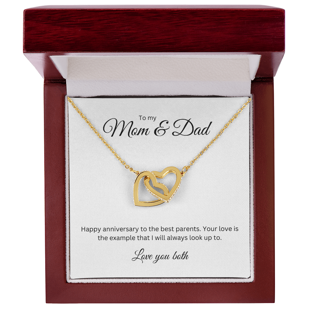 Celebrate your mother and father's anniversary with this timeless jewelry. The Interlocking Heart Necklace is a perfect gift for your parent's anniversary