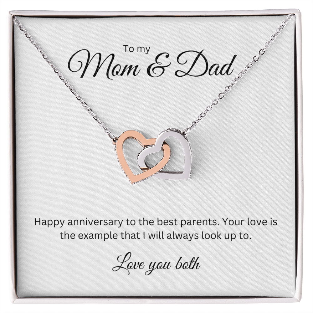 To My Mom & Dad: Interlocking Heart Necklace with Birthday Message Card, Meaningful Jewelry Gift