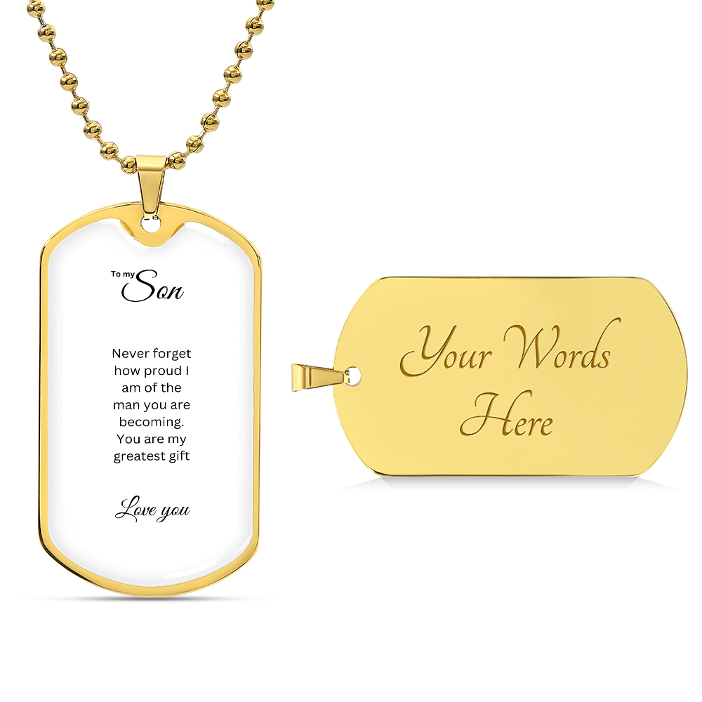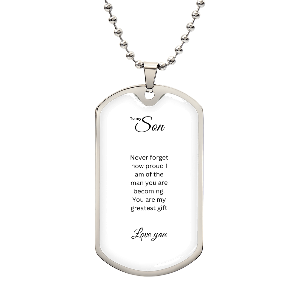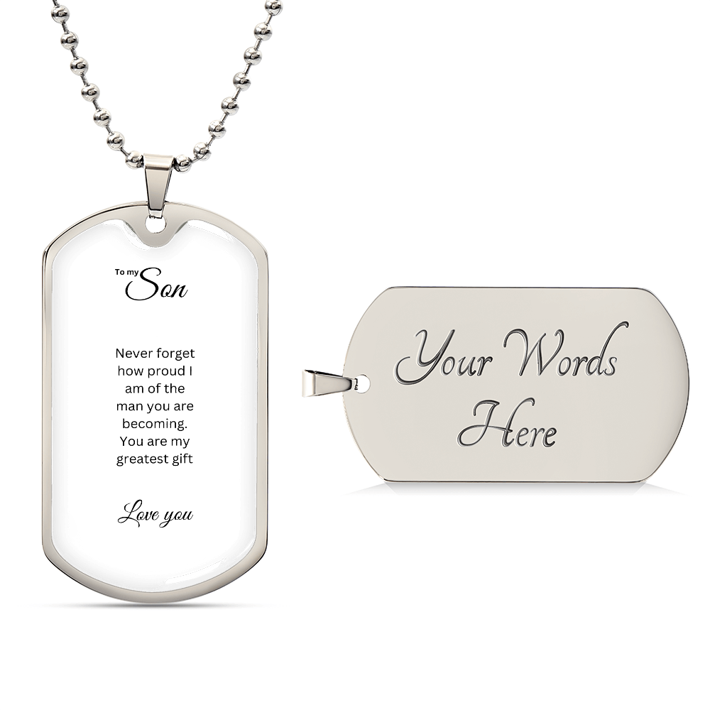 To My Son: Luxury Graphic Dog Tag Necklace with heartfelt message