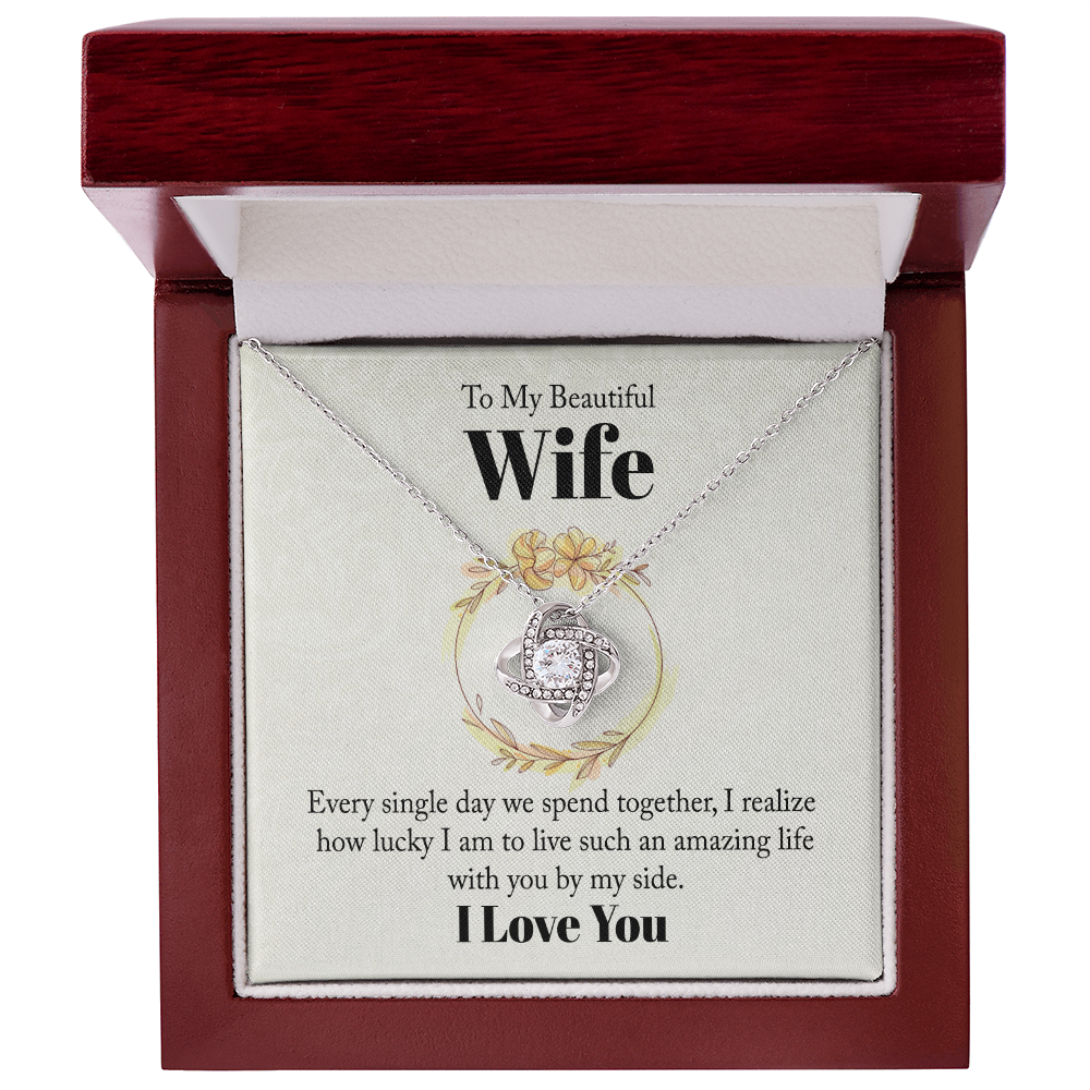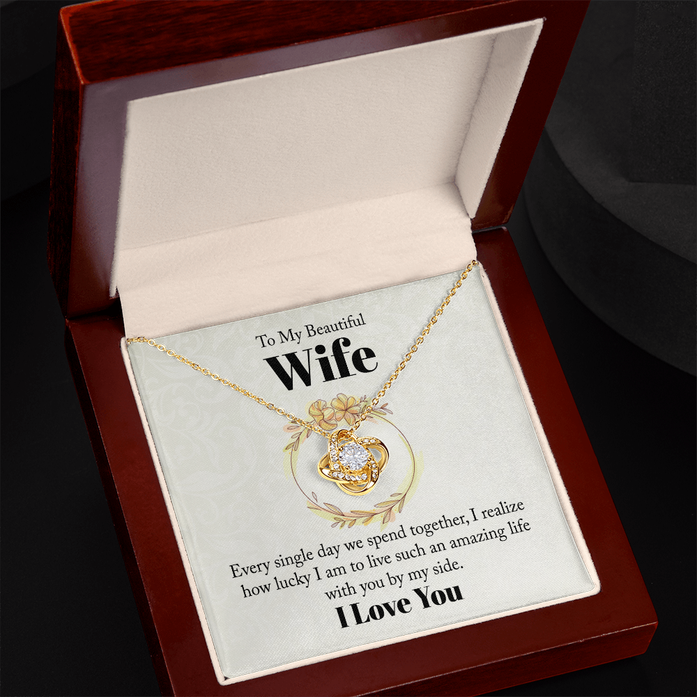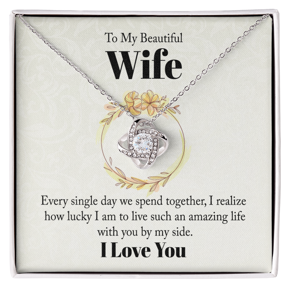 To My Wife, Love Knot Necklace with Heartfelt Message Card, Romantic Jewelry Gift