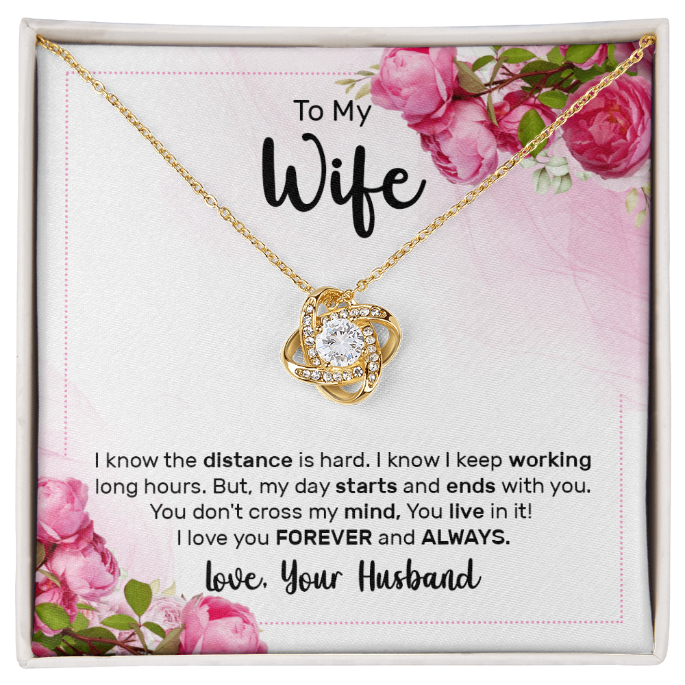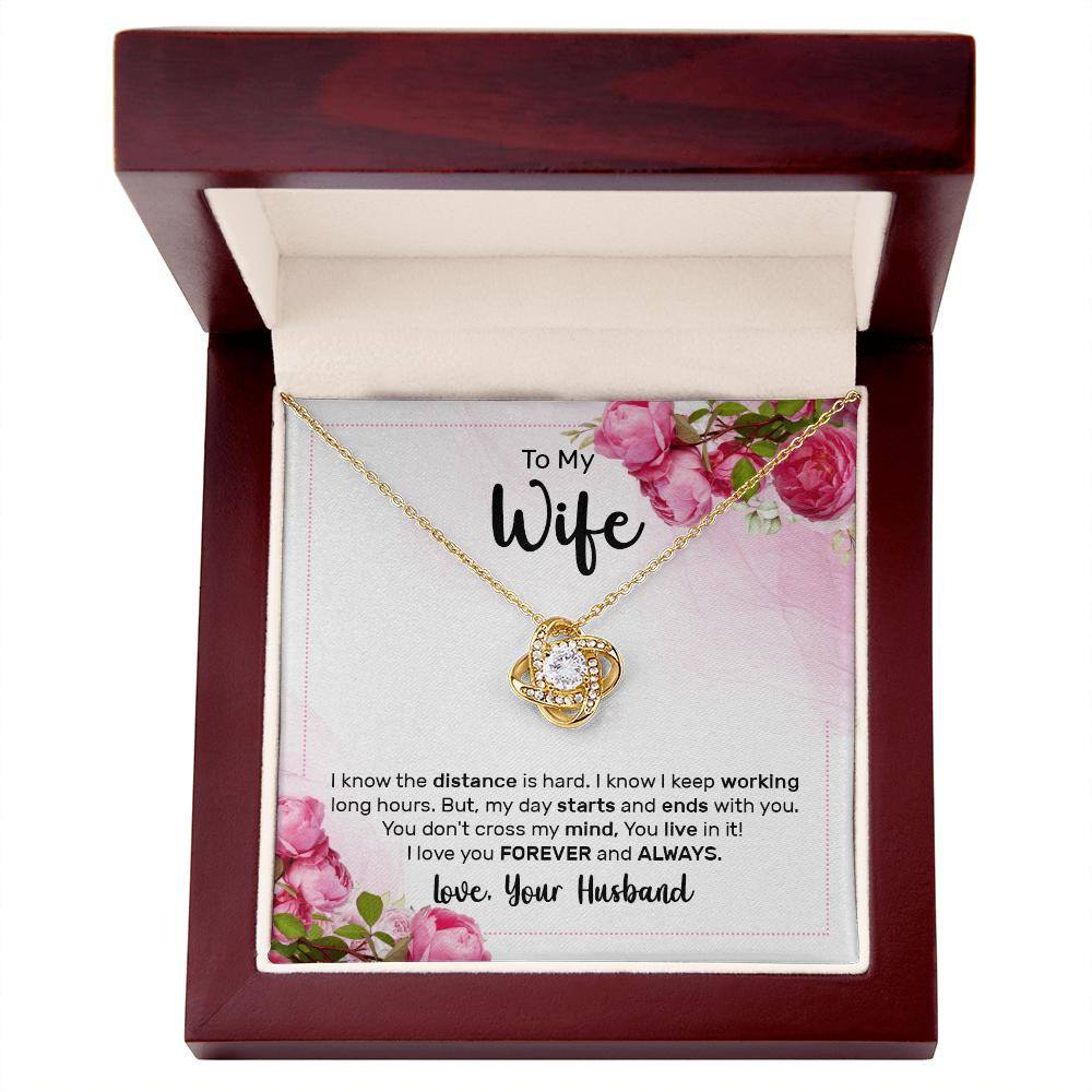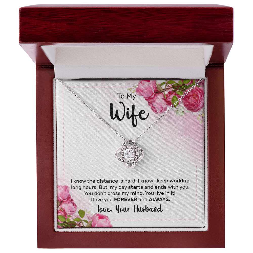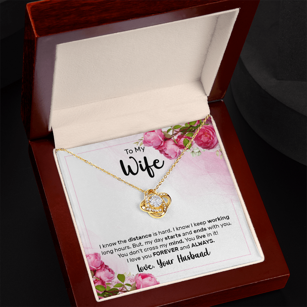 Limited Edition Message Card: Make her special day unforgettable with a gift that speaks from the heart. The Love Knot Necklace represents an unbreakable bond between you and your wife. It symbolizes the infinite and unending nature of true love and connection. Making it the perfect symbol of your love.