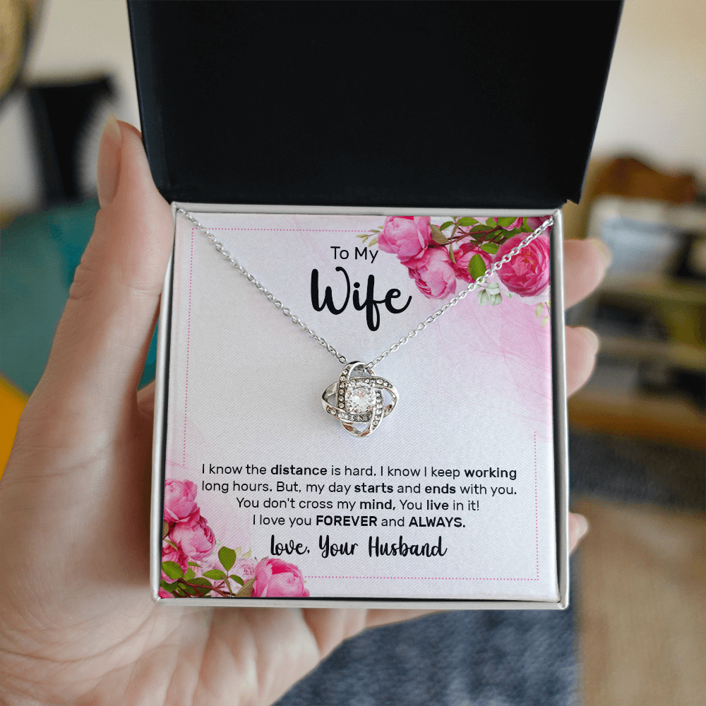 To My Wife, Love Knot Necklace with Limited Edition Heartfelt Message Card, Romantic Jewelry Gift