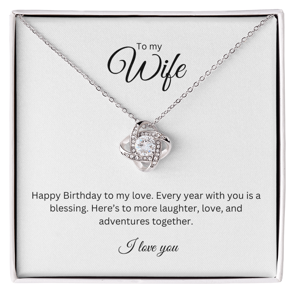 To My Wife - Love Knot Necklace with Happy Birthday Message Card